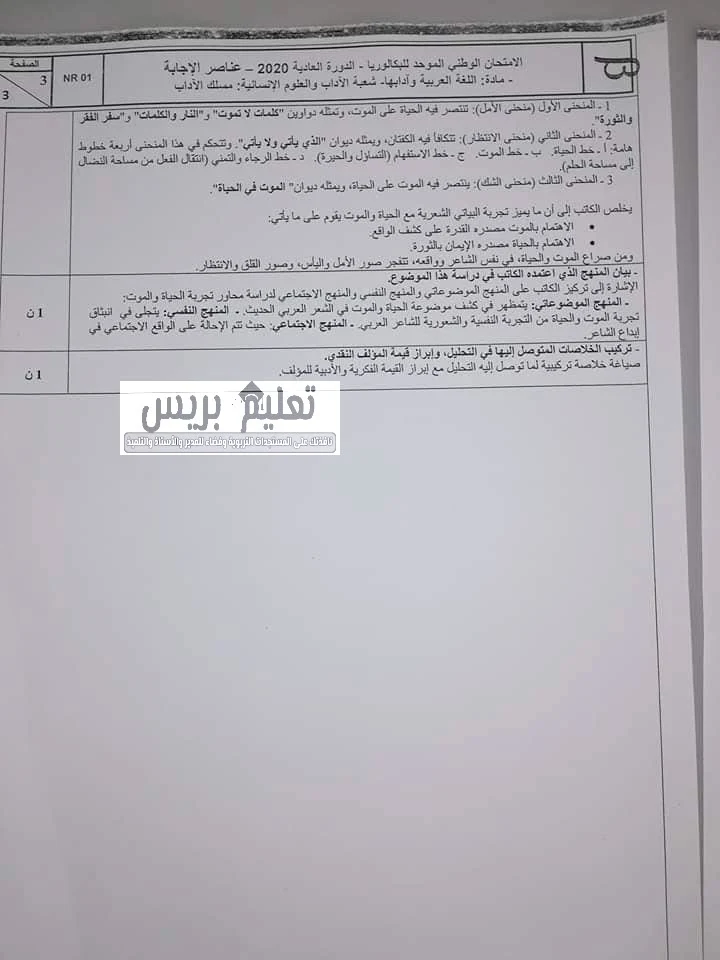 تصحيح مادة اللغة العربية للسنة الثانية بكالوريا شعبة الاداب والعلوم الانسانية مسلك الاداب دورة يوليوز 2020