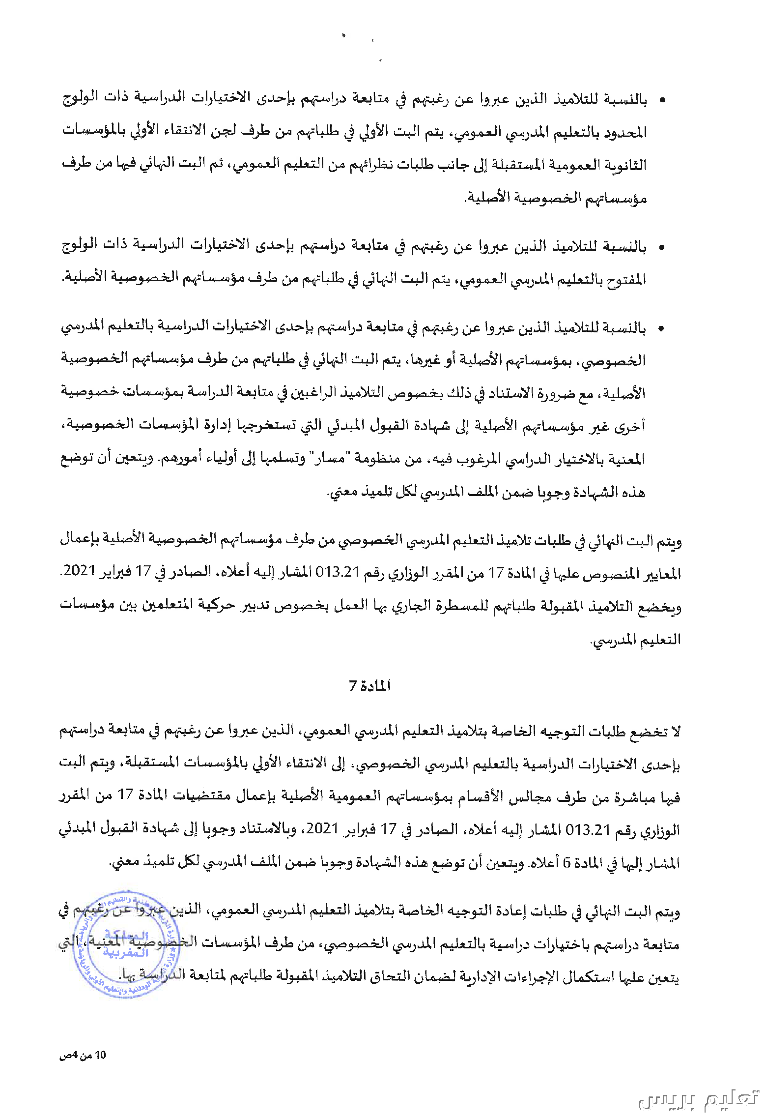 مقرر بشأن مسطرة التوجيه المدرسي والمهني برسم سنة 2023